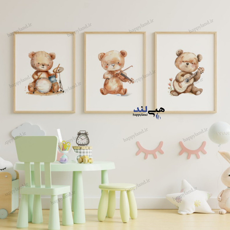 تابلو کودک هپی لند طرح خرس و گیتار