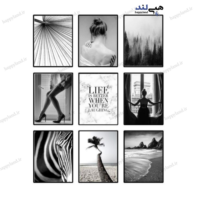 تابلو دکوراتیو هپی لند طرح مدرن سیاه و سفید 8716