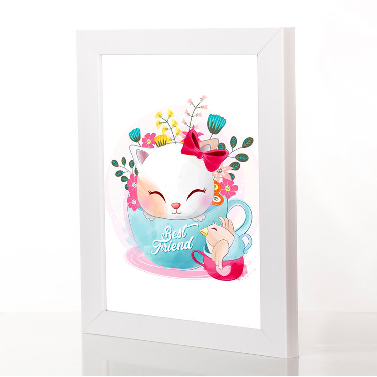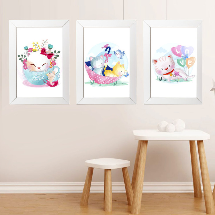 تابلو کودک هپی لند طرح گربه چتر و فنجونی مدل shaw1031