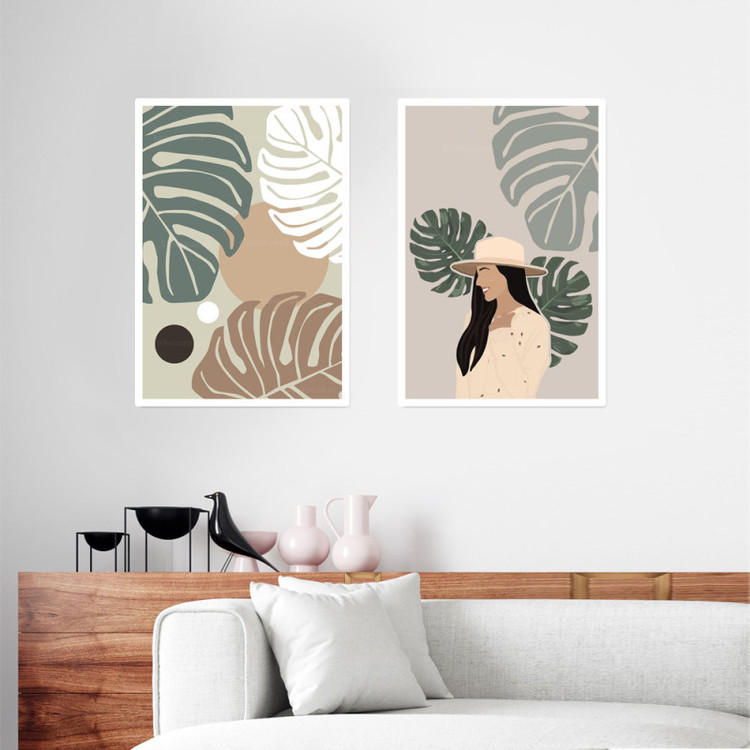 تابلو دکوراتیو هپی لند طرح دختر و برگ انجیری