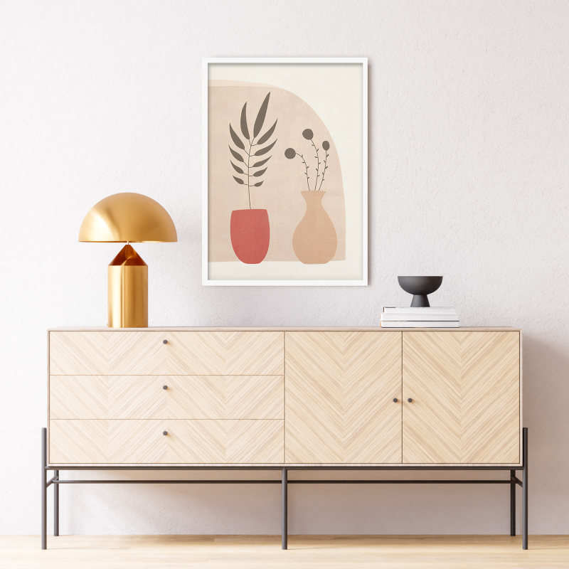 تابلو مینیمال طرح گلدان های سفالی