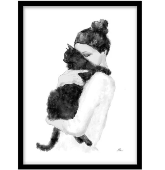 تابلو مینیمال هپی لند طرح دختر و گربه کد HP138
