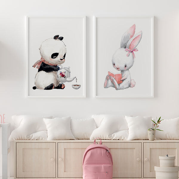 تابلو اتاق کودک هپی لند طرح خرگوش و پاندا
