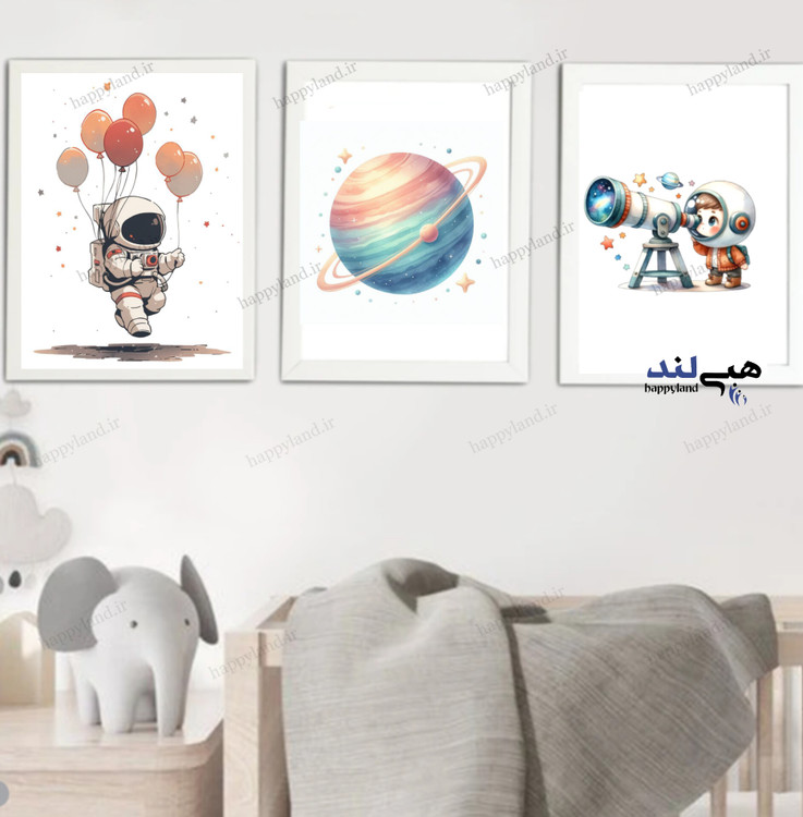 تابلو کودک هپی لند طرح فضانورد و سیاره2487